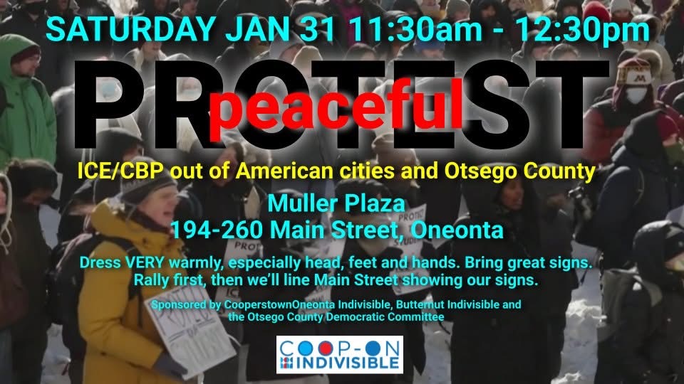 LOCAL INDIVISIBLE GROUPS DEMAND ACTION AFTER MINNESOTA SHOOTING Otsego County, NY – On Saturday, Jan. 24, Immigration and Customs Enforcement (ICE) and Customs and Border Protection (CBP) in Minneapolis shot and killed another American Read more