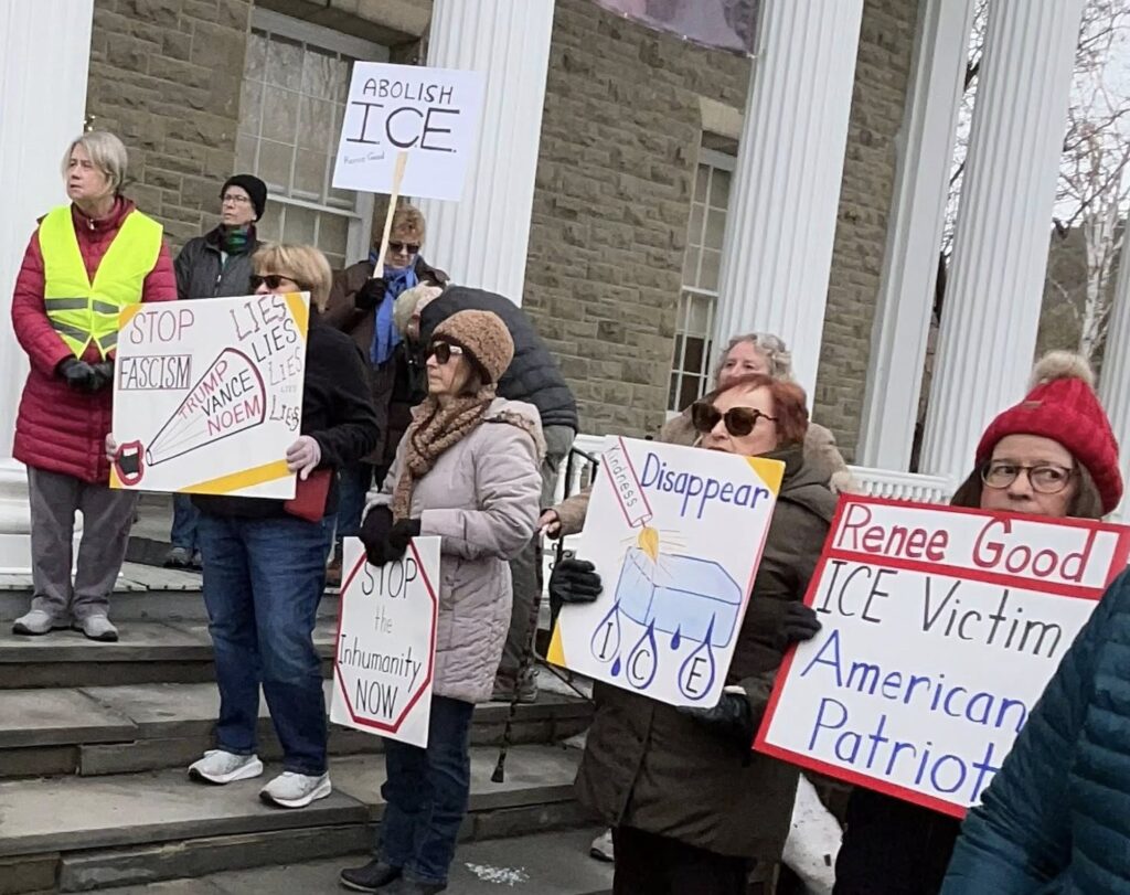 A big THANK YOU to every one of you who came out to the Cooperstown rally today and to everyone who couldn’t make it but was there in spirit. Our counters put the number at 400. The police told us that was the biggest rally they had ever seen in Cooperstown. Thank you also to all the peacekeepers, speakers – D7 Board Rep Leslie Berliant, former Mayor Mark Drnek, OCDC Chair Caitlin Ogden – and to David Frame, our invaluable sound technician who helped make this rally a success. Finally, thank you to the Village of Cooperstown and Village police for working with us so cooperatively. This is just the beginning of a very important year of resistance. Have courage, stay connected, stay active, and take care of yourselves. Every one of you is needed in this fight for democracy and justice!